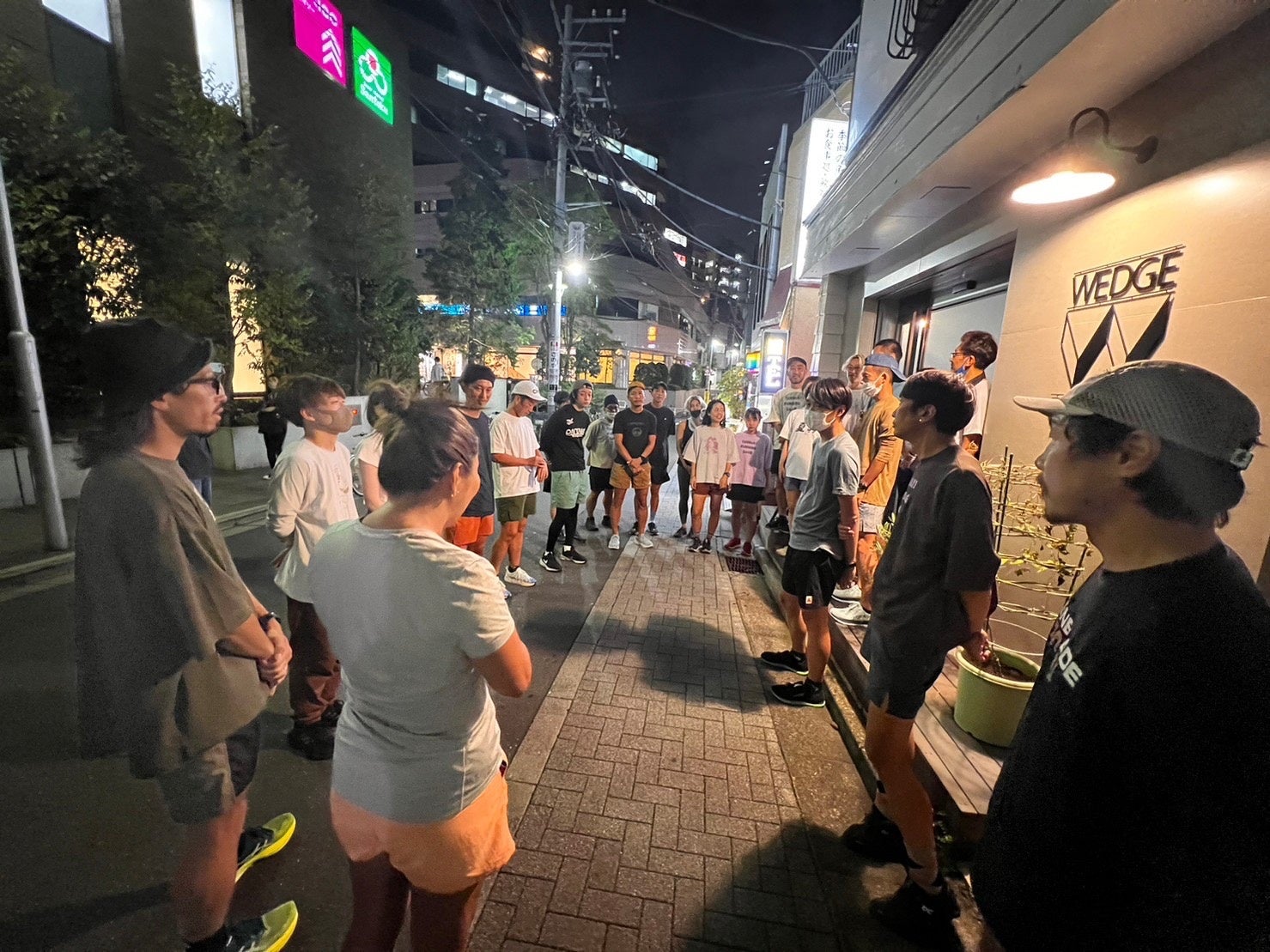製品企画の第一段階として文化服装学院内でランニングを通じ、学内・学外の方々と交流を目的に設立された同好会『BunkaRunningClub』のメンバーとなった学生にランニングというスポーツ/カルチャーを実際にグループランニングという形で体験してもらい、その奥深さを理解してもらいました。学生時代に強制的に走らされた、などの苦しいランニングではない、美しく楽しいランニングを知ってもらえるよう努めました。