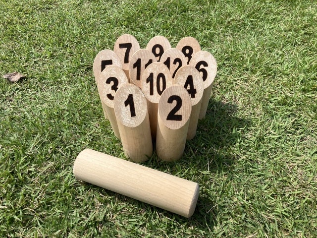 フィンランド・カレリア地方の伝統的なkyykkäというゲームをもとに、1996年に開発されたスポーツです。木製の棒(モルック)を投げ、3~4メートル先に置いた1~12の数字が書かれた12本の木製のピン(スキットル)を倒します。複数本倒した場合は倒した本数、1本のみの場合は書かれた数字をポイントとしてカウントし、50点ちょうどになったチームの勝利。50点を越えた場合は持ち点25点から再開します。年齢関係なく誰でも楽しめることから、近年日本では競技人口が急増しているスポーツです。
