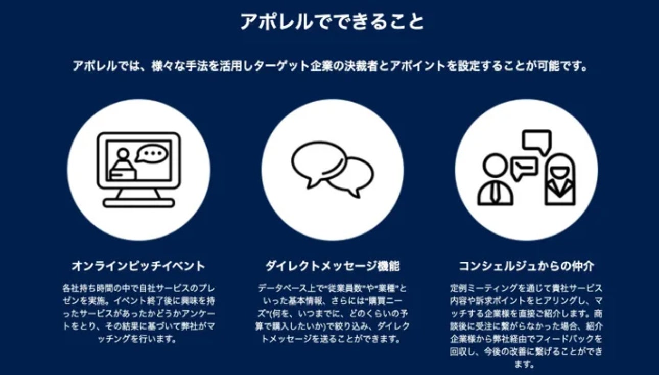 事業内容 :経営者・決裁者マッチングプラットフォーム「アポレル」の開発・運営