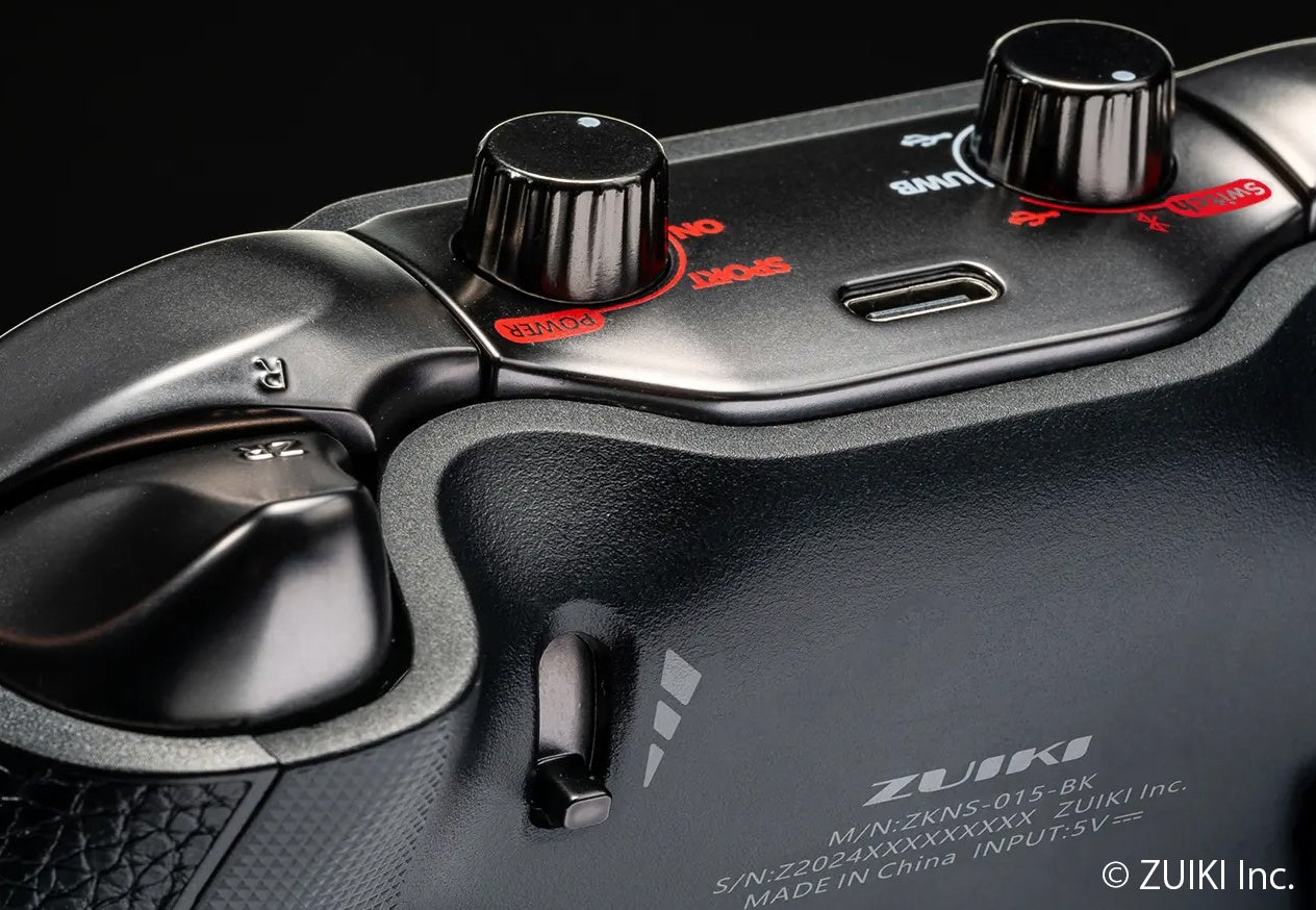 本筐体のメインフレームにアラミド繊維、グリップにフェイクレザー(合皮)、十字ボタンと背面パドルにメタルを採用しており、高い耐久性能とグリップ力を兼ね備えた高機能コントローラーです。