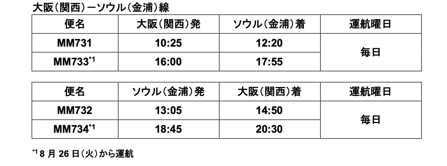 なお、大阪(関西)-ソウル(金浦)線は8月26日(火)より、週14便(1日2往復)に増便します。