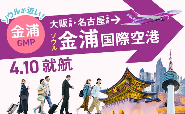 Peach Aviation株式会社(以下: Peach、代表取締役CEO: 大橋 一成)は、4月10日(木)から大阪(関西)-ソウル(金浦)線を開設することを発表しました。本日13:00より、航空券の販売を開始します。運賃は、片道5,280円からで、燃油サーチャージはかかりません。