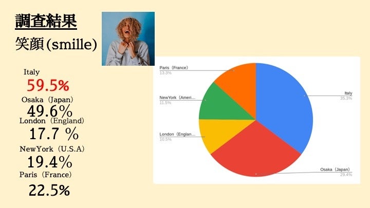 「自己肯定感」と「笑顔」に相関性があるとすると、大阪のファッション好きな人々は、「自己肯定感が高い」という結果が見られました!これは、『「ファッション」と「自己肯定感」には、一定の相関性が見られる』、というこのグループ仮説が証明されたことになります。