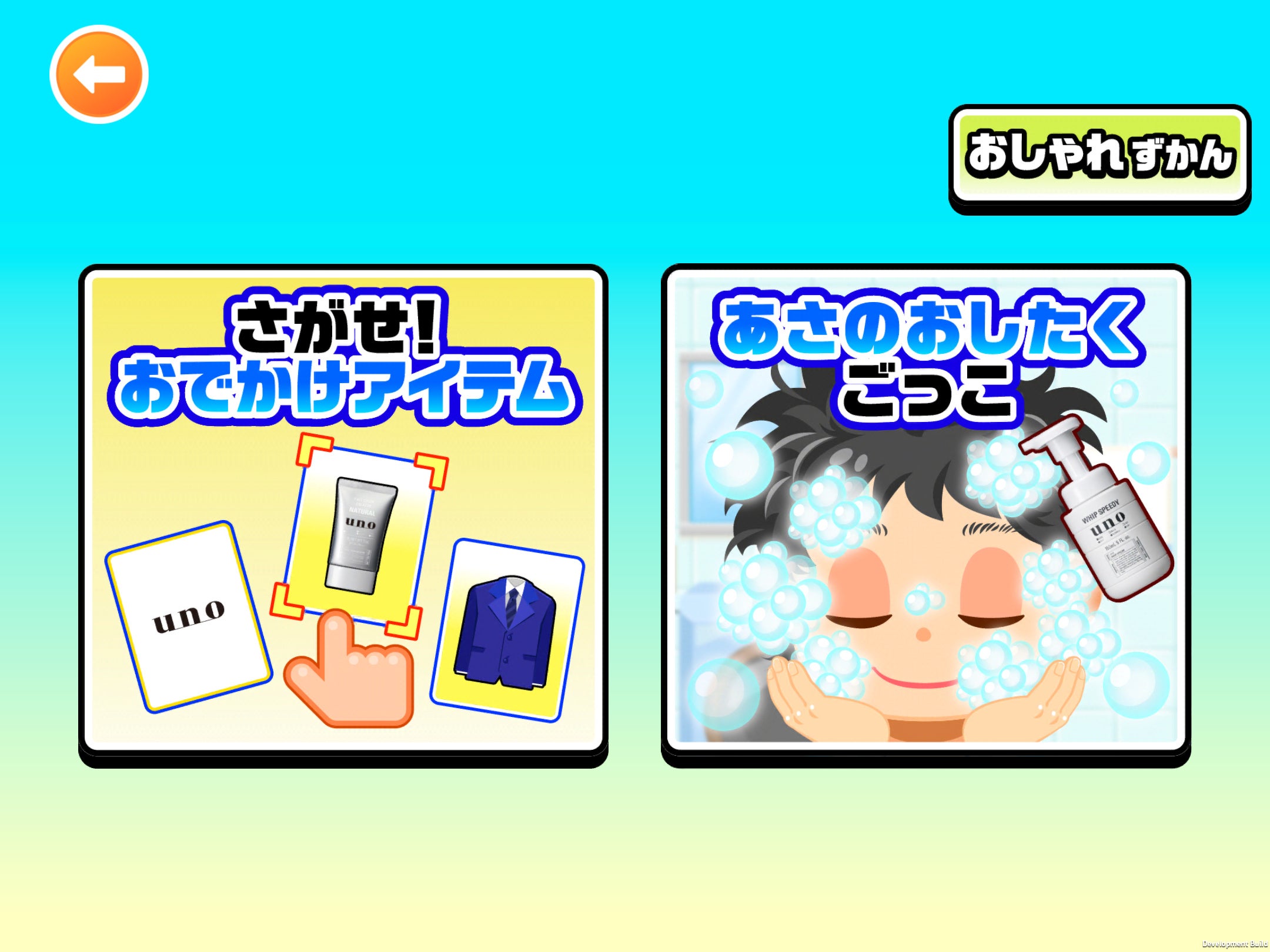 朝目覚めてから、お出かけするまでの身じたくを楽しく体験できるゲームです。3人のキャラクターから選択でき、洗顔、ひげそり、スキンケア、ヘアスタイリングなどを行い、身なりを整えます。アイテムを使用して顔を洗ったり、髭を整えたり、複数のヘアスタイルや眉毛の形の中から自分が好きなものを選ぶことができます。身なりが整ったら、お出かけし、写真撮影をします。撮影した写真は「おしゃれずかん」に保存されます(保存枚数は最大8枚)。