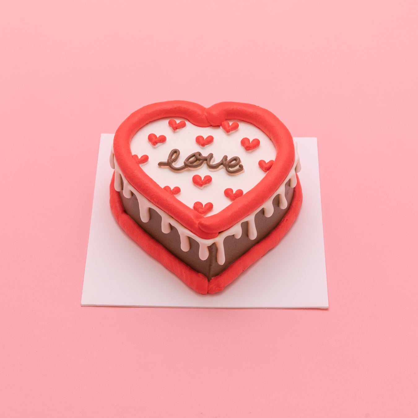 Cake withらしいポップでキュートなイメージと、通常のカスタムでは出来ないデザインを意識したバレンタインデーにぴったりのケーキです。たくさんの小さなハートとケーキの表面が溶けているようなドリップがポイント♡