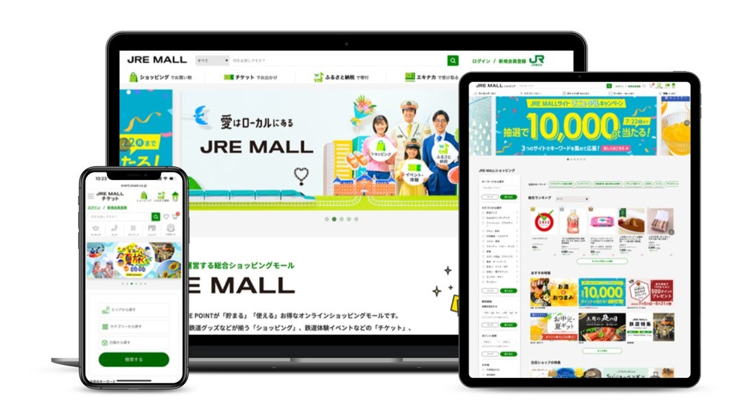 東日本旅客鉄道株式会社(JR東日本)は、東京都渋谷区に本社を置く、日本の大手鉄道事業者です。JRE MALLは、JR東日本が運営する総合ショッピングモールです。鉄道グッズ、食品、旅行商品、地域特産品、鉄道イベント、ふるさと納税など、幅広い商品やサービスを取り扱っています。2024年7月4日にサイトをリニューアルオープンし、JR東日本らしいリアルとデジタルを組み合わせたお客さま体験の創造を目的に、デザインの刷新や新機能を追加しました。