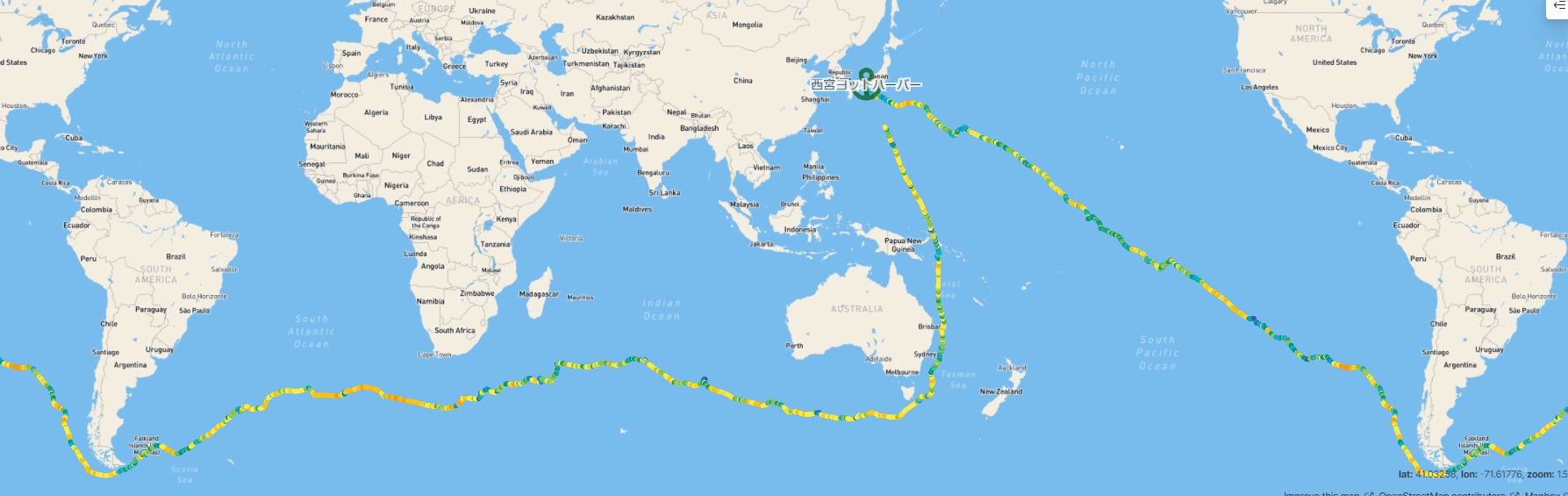 残り618.6マイルとなり、今週中にはゴールとなる紀伊水道(北緯33度50分~52分)に入る予定となります。