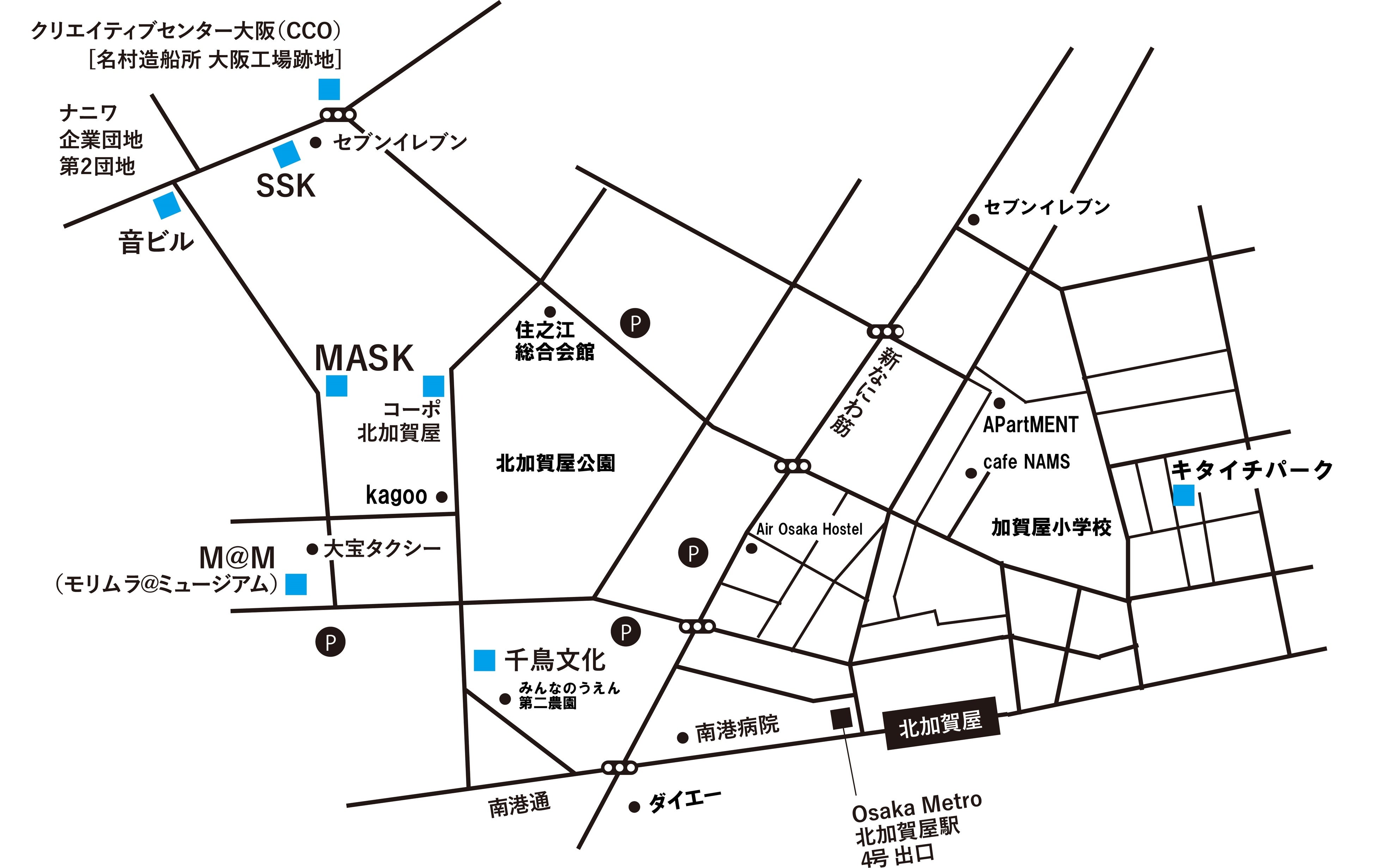 会場:千鳥文化、コーポ北加賀屋、音ビル、キタイチパーク