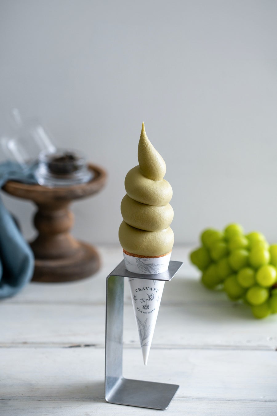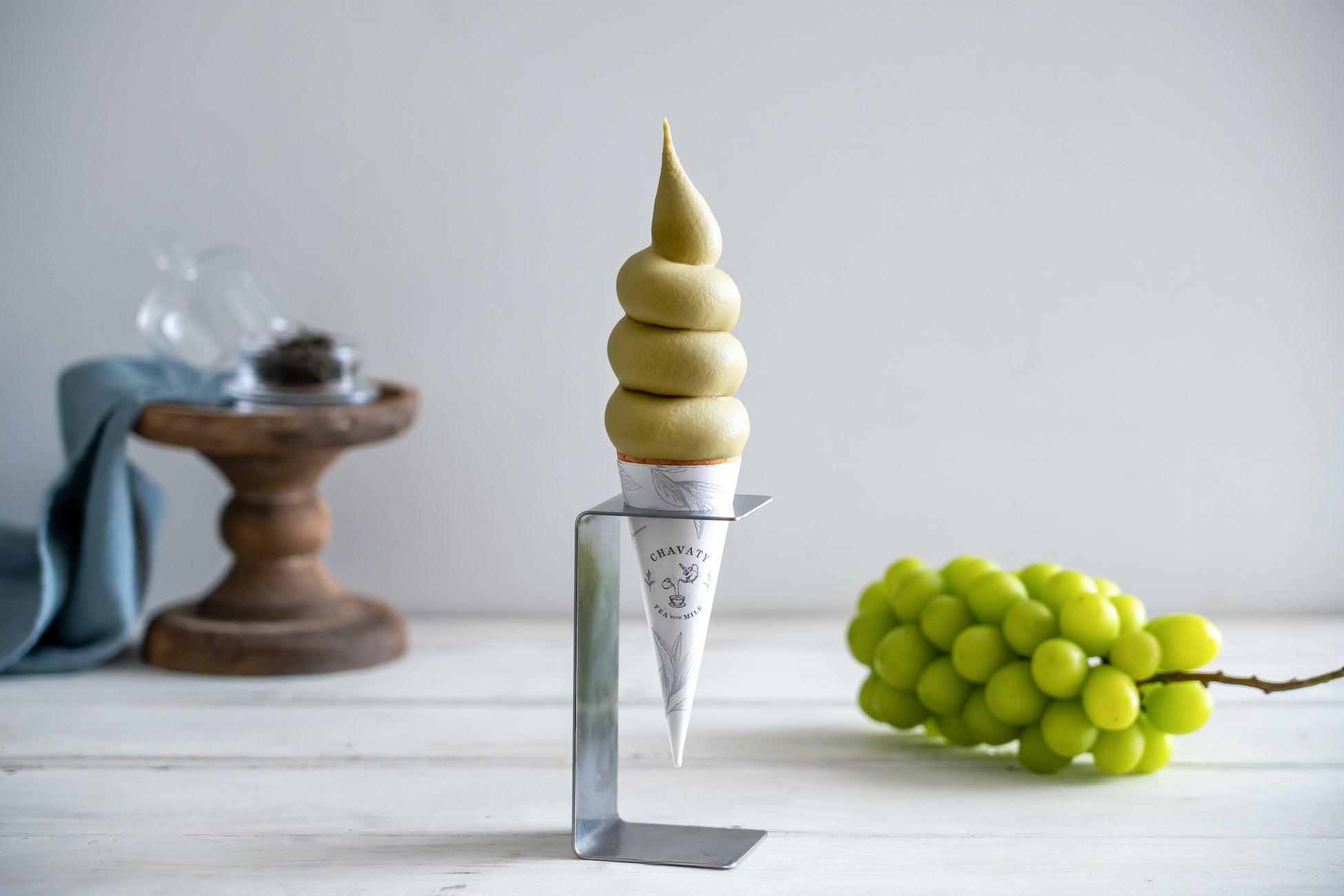 日本が誇る美味しいフルーツと丸ごと粉砕した茶葉を掛け合わせ、フルーティーな味わいに素材本来のお茶の風味を堪能することができる、CHAVATYオリジナルの季節限定ソフトクリーム。日本有数のぶどうの産地である、長野県が誇る高級果実シャインマスカットの、美しい果皮から弾ける出るような、上品な香りと濃厚な甘みを、銀毫ジャスミンの華やかな味わいと合わせてお楽しみいただけます。