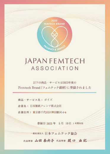 当協会は、『ポイズ® さらさら素肌 パンティライナー』の高い商品性はもちろん、商品を通じて吸水ケアをより身近で、取り入れやすいものとしていこうとする想いも高く評価し、Femtech Brand (フェムテック銘柄)に認定することで、多くの女性の悩みに寄り添う選択肢の一つになることを期待しております。