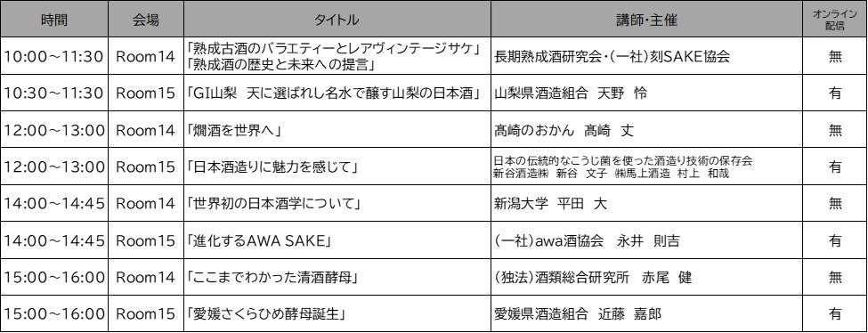 ◆日本酒セミナースケジュール 6月17日(土)のみ開催/チケット購入者のみ参加可能です(無料)