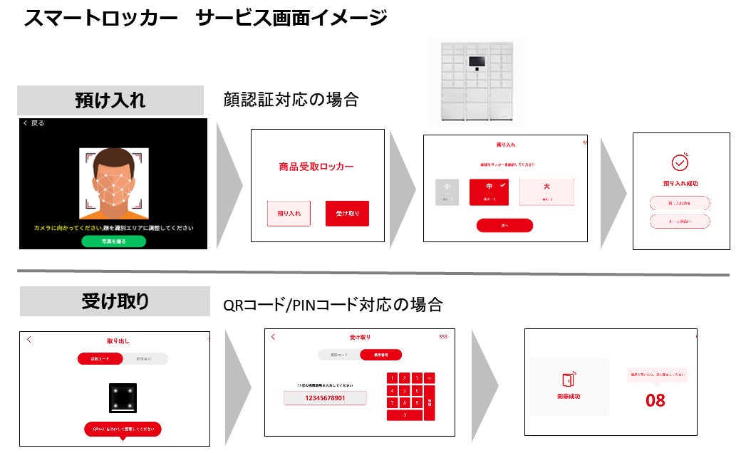 当社はAIとIoTのインテグレーターであります。商品の受け取りにおいては、QRコードやバーコードによる認証だけでなく、高度なアルゴリズムによる顔認証AIを搭載しています。また、ロッカーの筐体そのものについては業界トップのキャビネットメーカーと協業し新世代のスマートロッカーを製品化しております。今回の実証実験では、商品配送のスタッフがロッカーを解錠し商品を投入する際に顔認証AIを利用しています。配送スタッフは事前に顔データ登録をしておくことで、物理キーは不要となりハンズフリーでロッカーを解錠することができます。