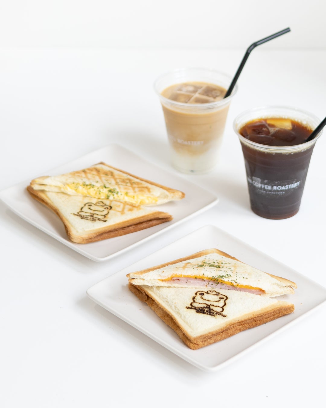 対象コラボ製品。かえるのピクルスバージョンの「たまごホットサンド」「ハムチーズホットサンド」