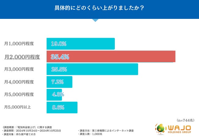 続いて、昨年に比べて毎月の電気料金が上がったと回答した方に、『具体的にどのくらい上がりましたか?』と聞きました。
