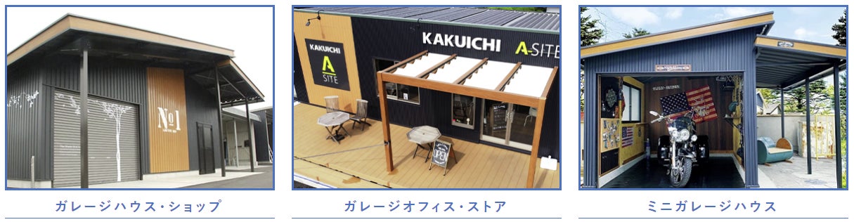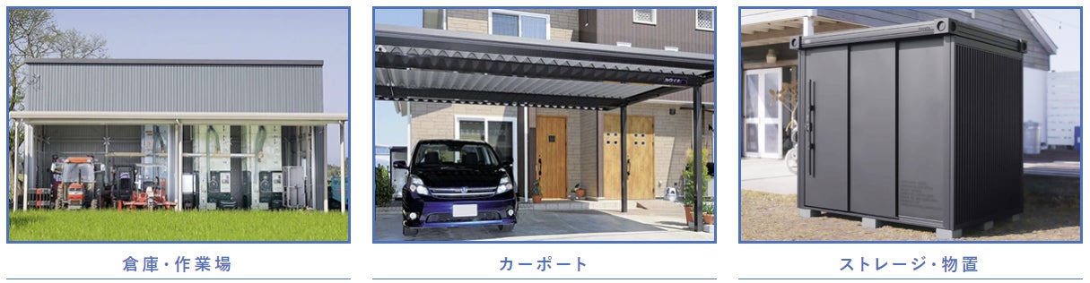 ガレージハウスやオフィス、倉庫、カーポート、物置まで幅広くご提案できます。