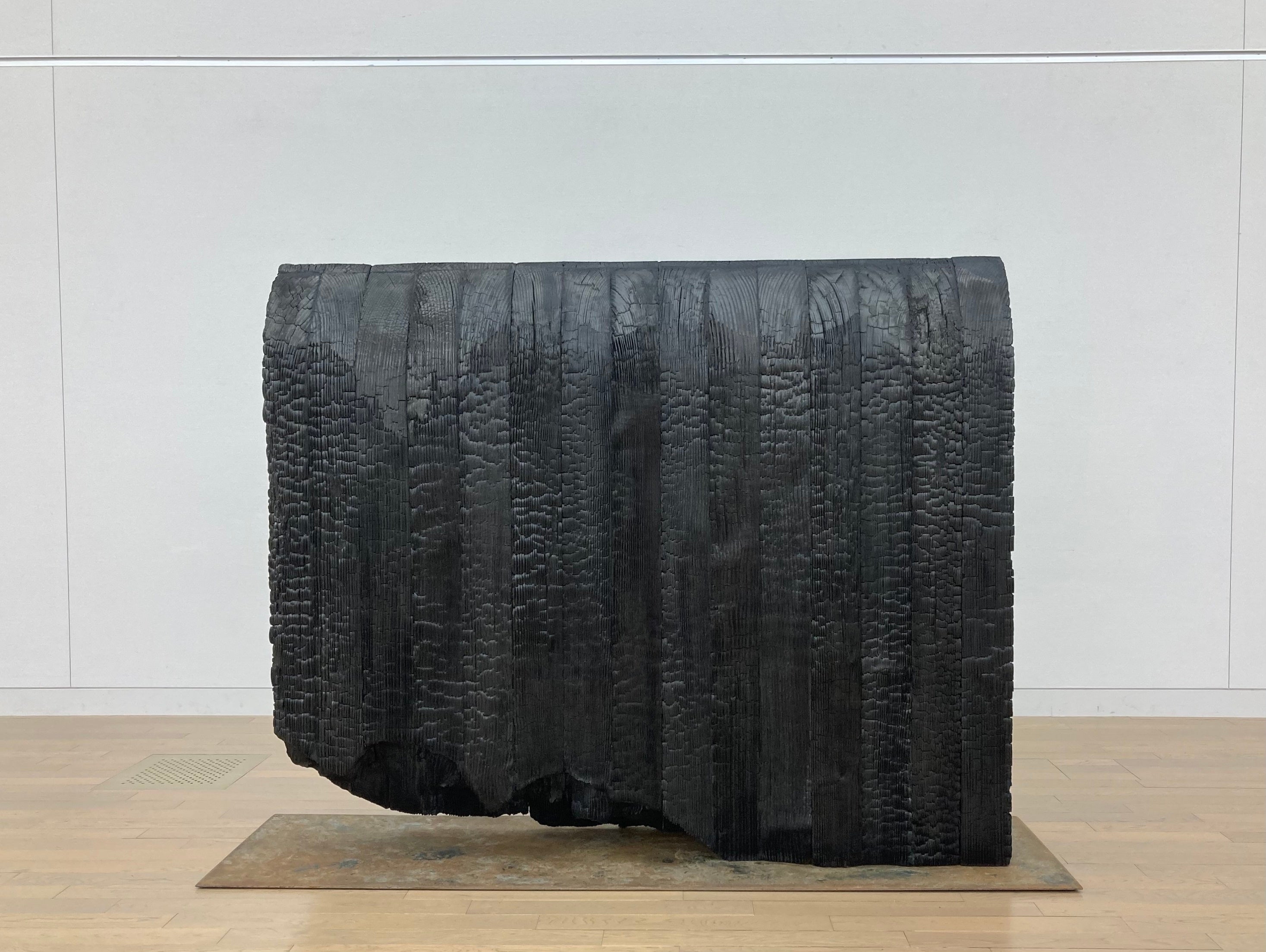夕方から雨が振り出しそのまま夜になった…まるで雨が降ることによって夜へと染まっていくように感じた。その体験から「雨」をシリーズとして制作をはじめた香取宏幸。今回の彫刻展では、膨らみのある形と芽のような伸びのある形の木彫と、柾目の木材を炭化して夜に降る雨を表現した作品を展示いたします。