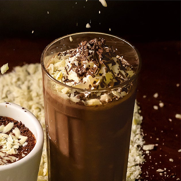 甘いドリンクで一息つきたい方にぴったりのドリンクです。スムージー同様、ミルクとホワイトの2種類のチョコレートフレークをふんだんにトッピングしました。まずはかき混ぜず、トッピングのチョコフレークが溶け出す前に一口。ほんのりビターな味わいをお楽しみください。