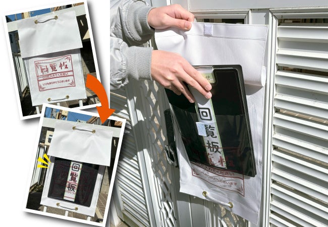 前面に透明ビニールを使用しているので、フタを開けなくても回覧板が来ているかどうか一目瞭然です。見落とすこともなくなり、スムーズに回覧板を次へ回せます。