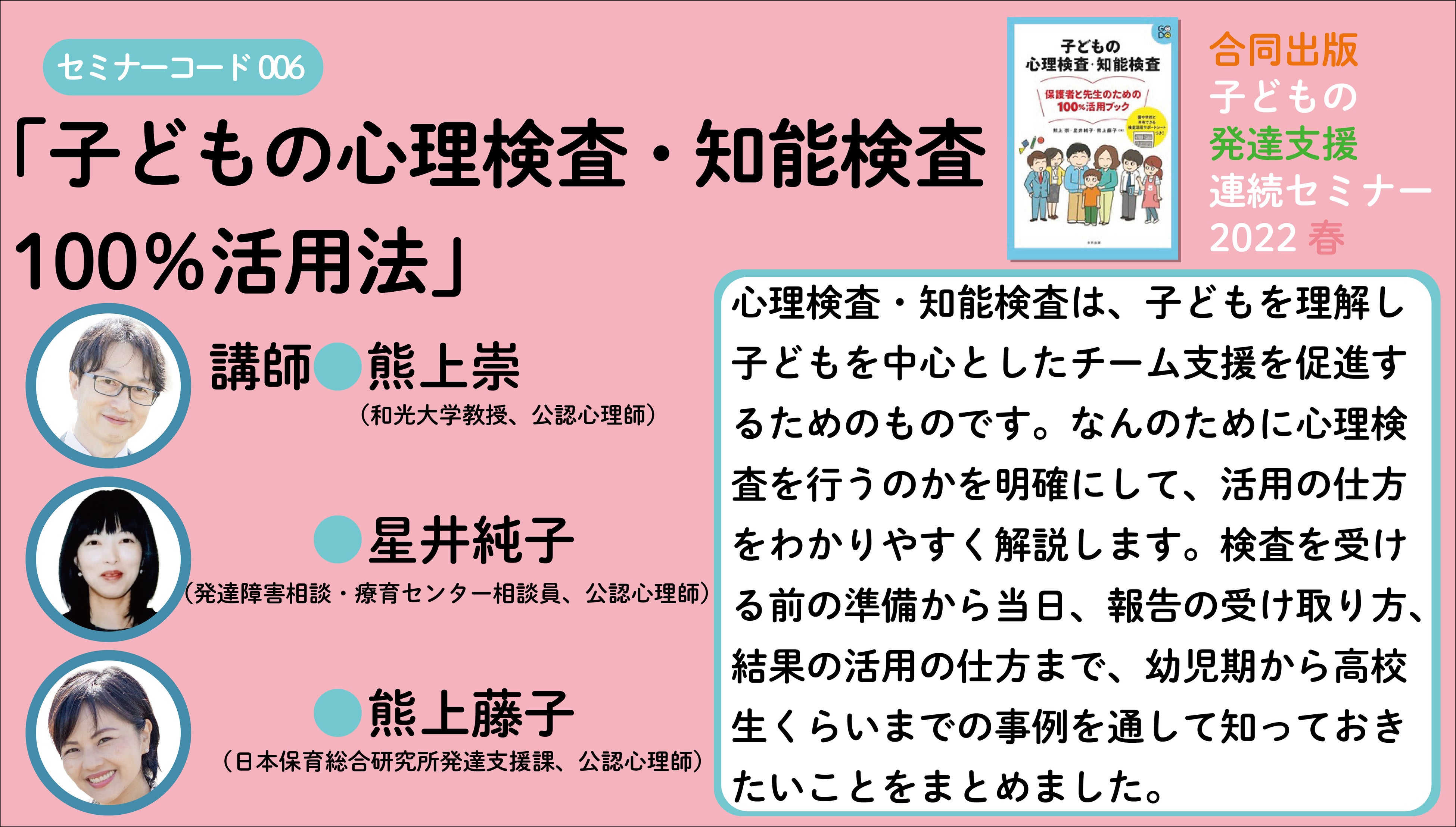 - セミナーコード006「子どもの心理検査・知能検査100%活用法」