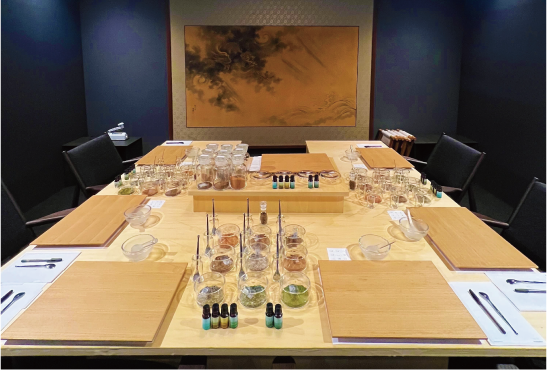 「Yohaku」のアイコンでもある4種のブレンドオイルの香りをベースに、 50年の経験と知識を持つ調香師 堀田龍志氏が特別に開発したレシピでフレグランスバッグ(香り袋)の創香を体験していただけます。