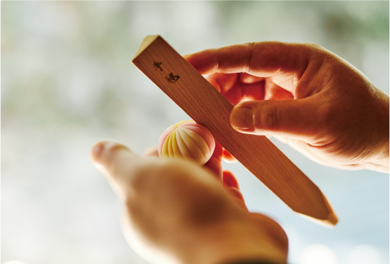 鎌倉創作和菓子「手毬」の御園井裕子氏に指導を受けた専属の講師とともに、季節に合わせた練りきりを昔ながらの道具を用いて作ります。