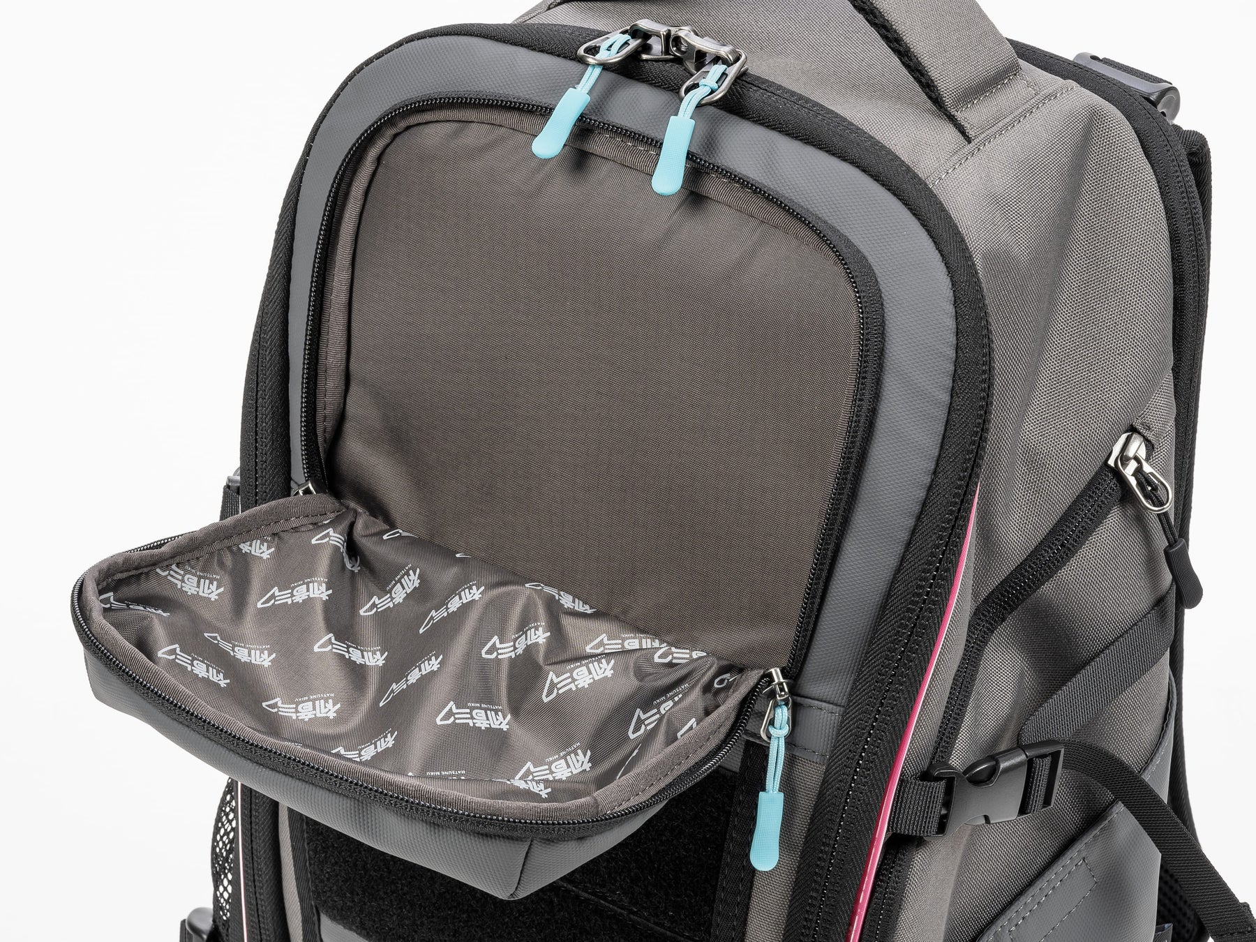 「初音ミク バックパック V2」「初音ミク マルチバッグ V2」は、『初音ミク』をイメージさせるカラーや要素を盛り込んだデザインはもちろんのこと、前作をご購入いただいたユーザー様からのご意見を取り入れ、よりお使いいただきやすく改良いたしました。