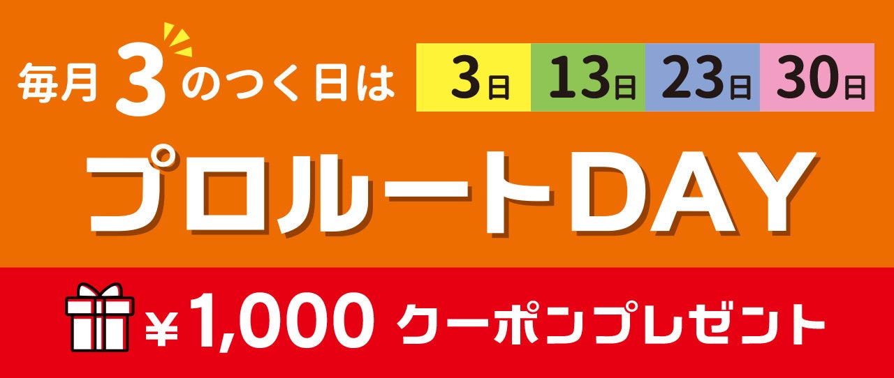 旧プロルートモールをご利用いただいていたお客様に引き続き便利にお得にご利用いただけるよう、「3のつく日はプロルートDAY」をはじめ、いままでのキャンペーンはそのまま継続します。