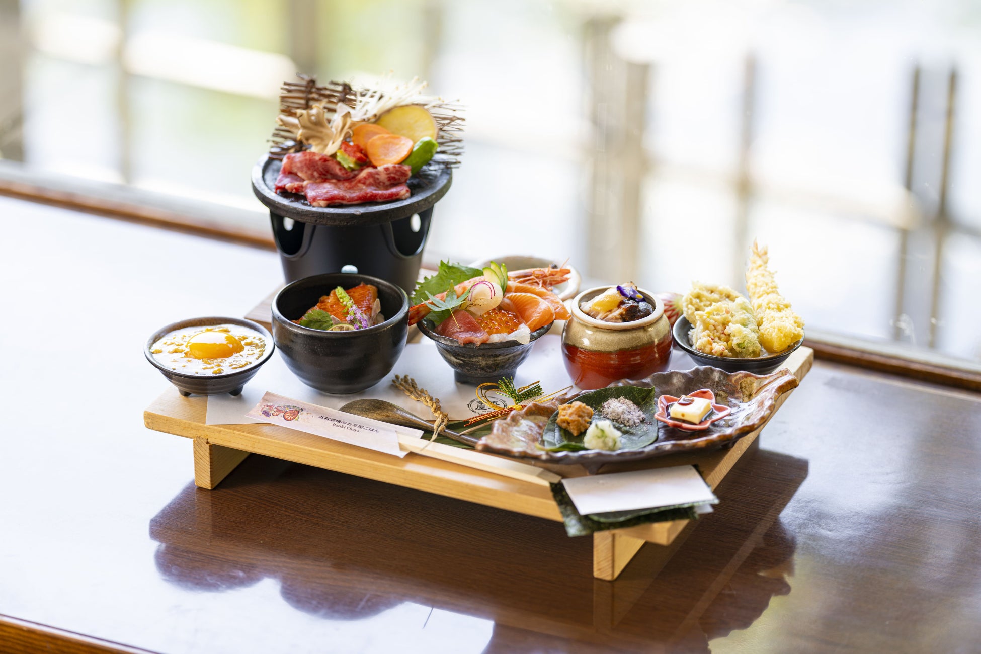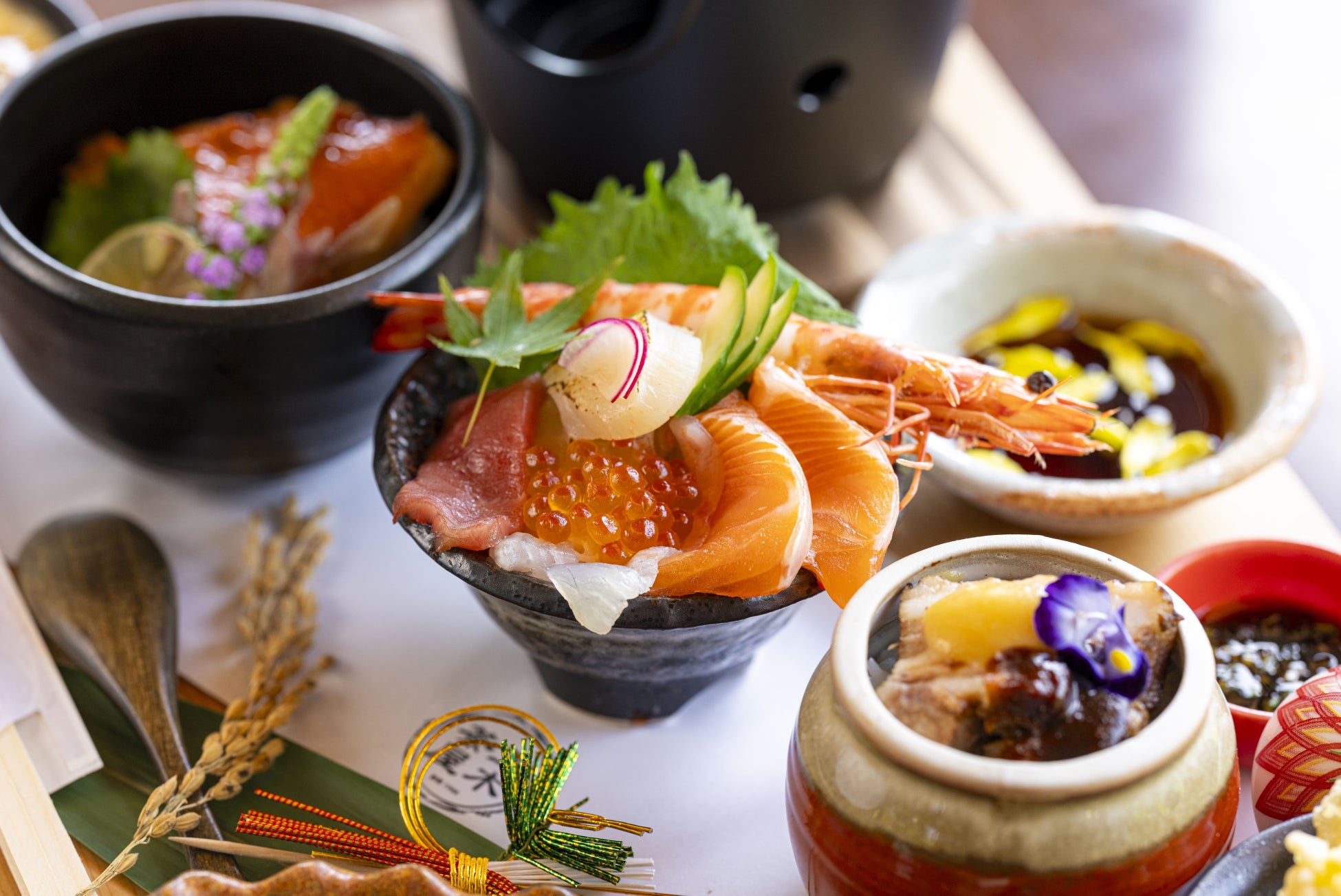 この御膳は、季節の新鮮な素材を使用した5種類の丼が含まれており、それぞれ異なる味わいを楽しむことができます。