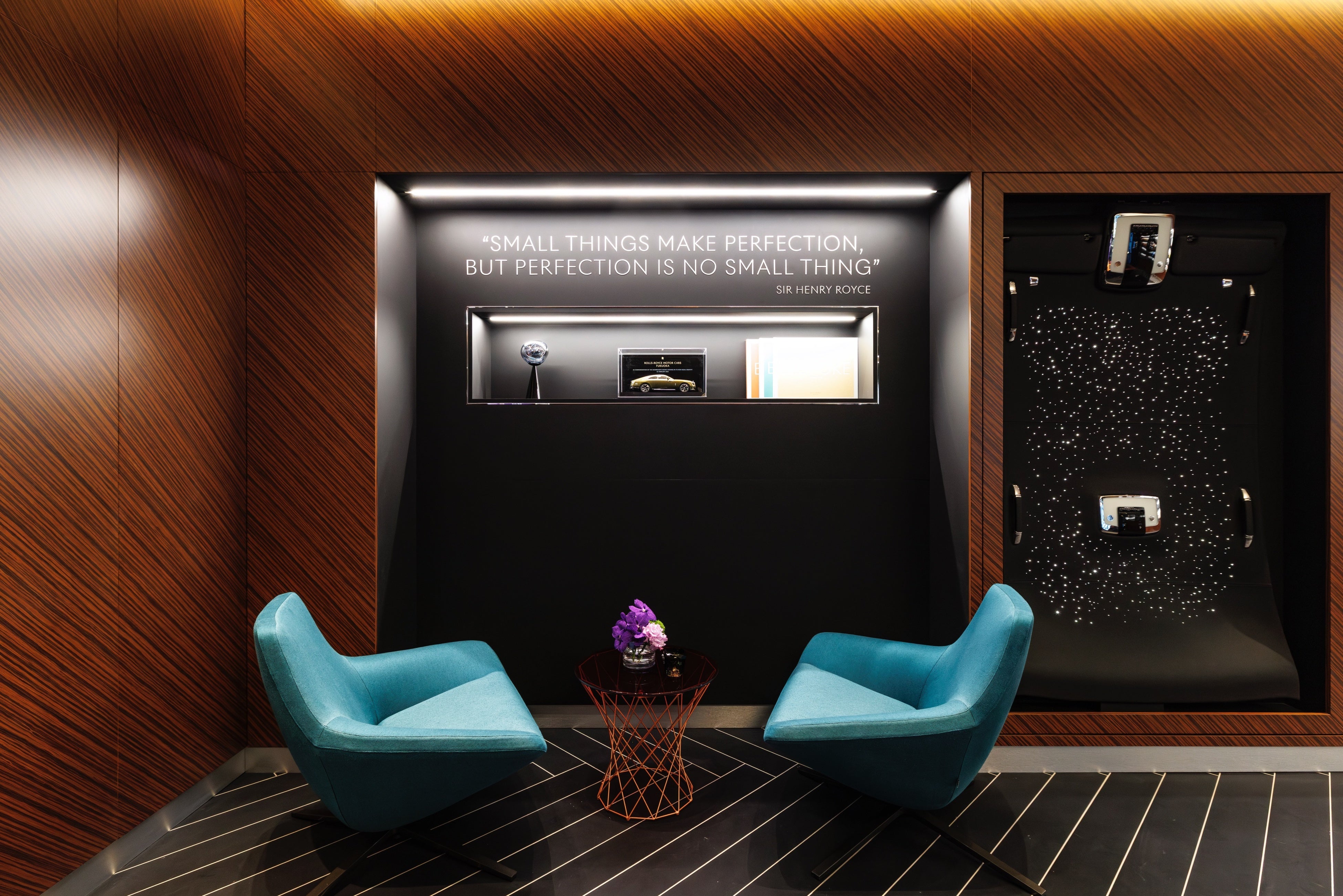 •車両展示スペースに加えて、ロールス・ロイスの卓越したビスポークのためのスペース「アトリエ (Atelier)」や、「キャビネット・オブ・キュリオシティ(Cabinet of Curiosities)」、「スピークイージー・バー (Speakeasy Bar)」で構成されたラグジュアリーな空間