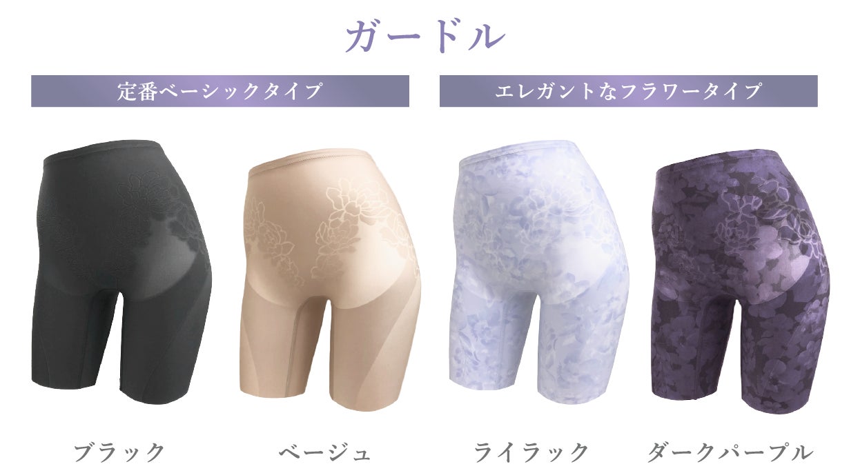 シェイパーとガードルそれぞれ4柄をラインナップ。補整とオシャレを両立しました。