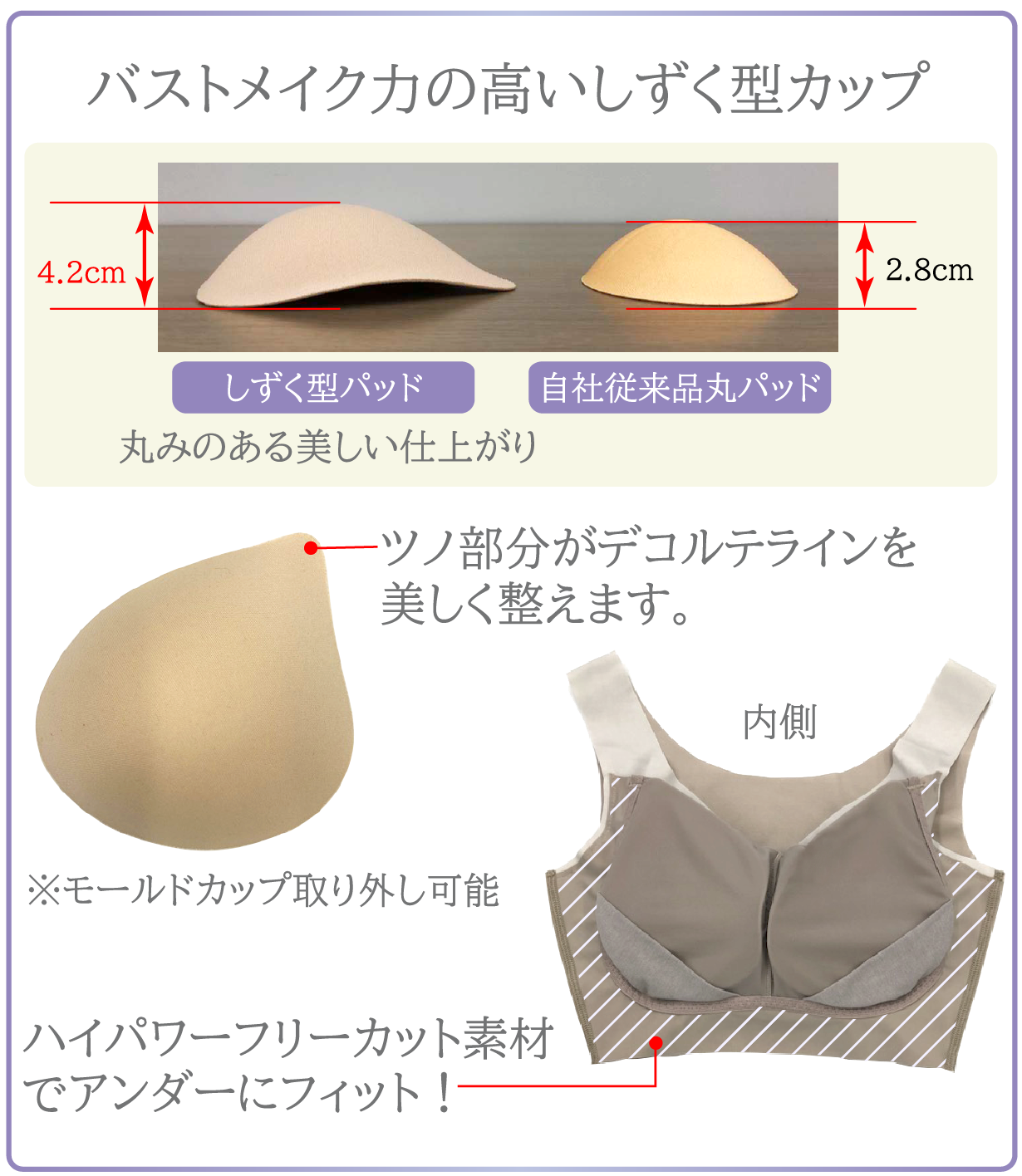 1枚の生地で着圧コントロールが可能な特許製法VISOMAGIC®(ビスコマジック)で、縫い目のストレスを大幅に軽減!補整下着のイメージを覆す、スタイリッシュで華やかなデザインが特徴の新商品です。