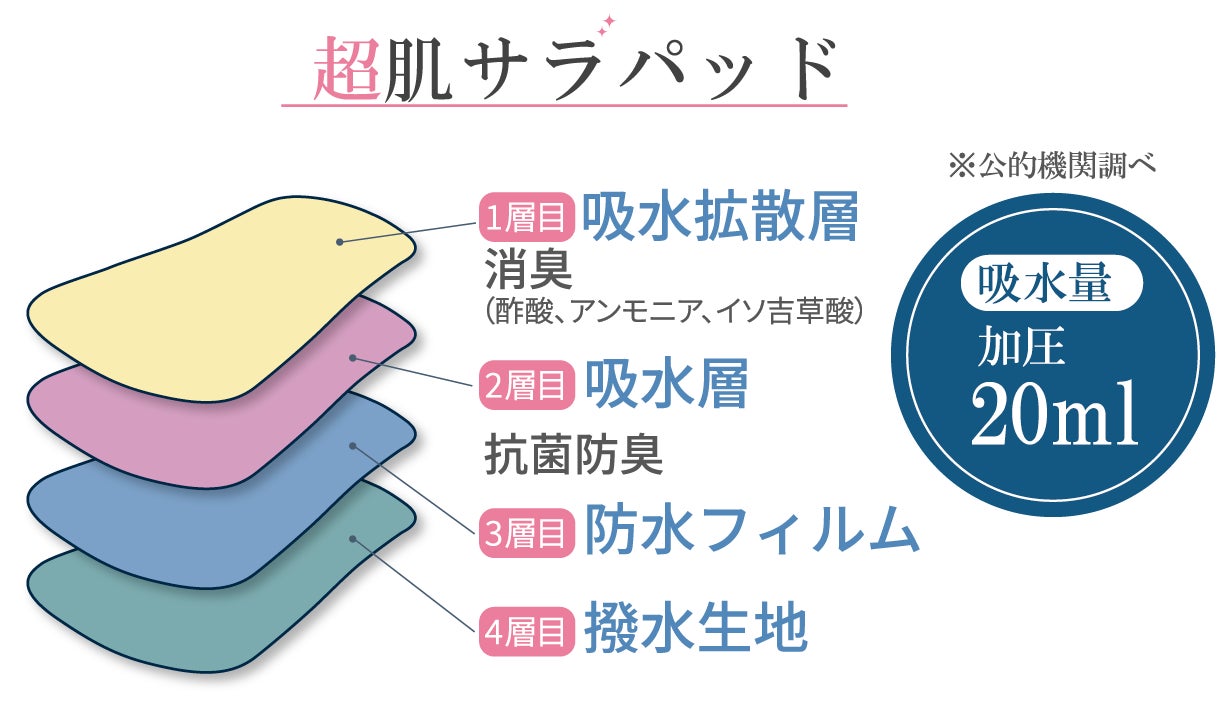 ②超肌サラパッドでいつでも快適!薄型設計なのにしっかり吸水!