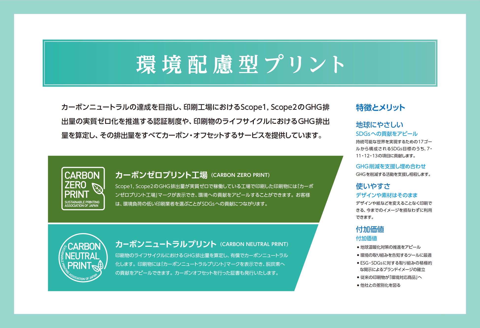 当協会の運営する環境ラベルの「環境配慮型プリント」である、「カーボンゼロプリント工場」マークと「カーボンニュートラルプリント」マークのご紹介、さらにそのマークを実際に使用した印刷物の事例を展示いたします。また、当協会が各会員に提供している、印刷物のGHG排出量を算定するツールのデモンストレーションもご用意しています。