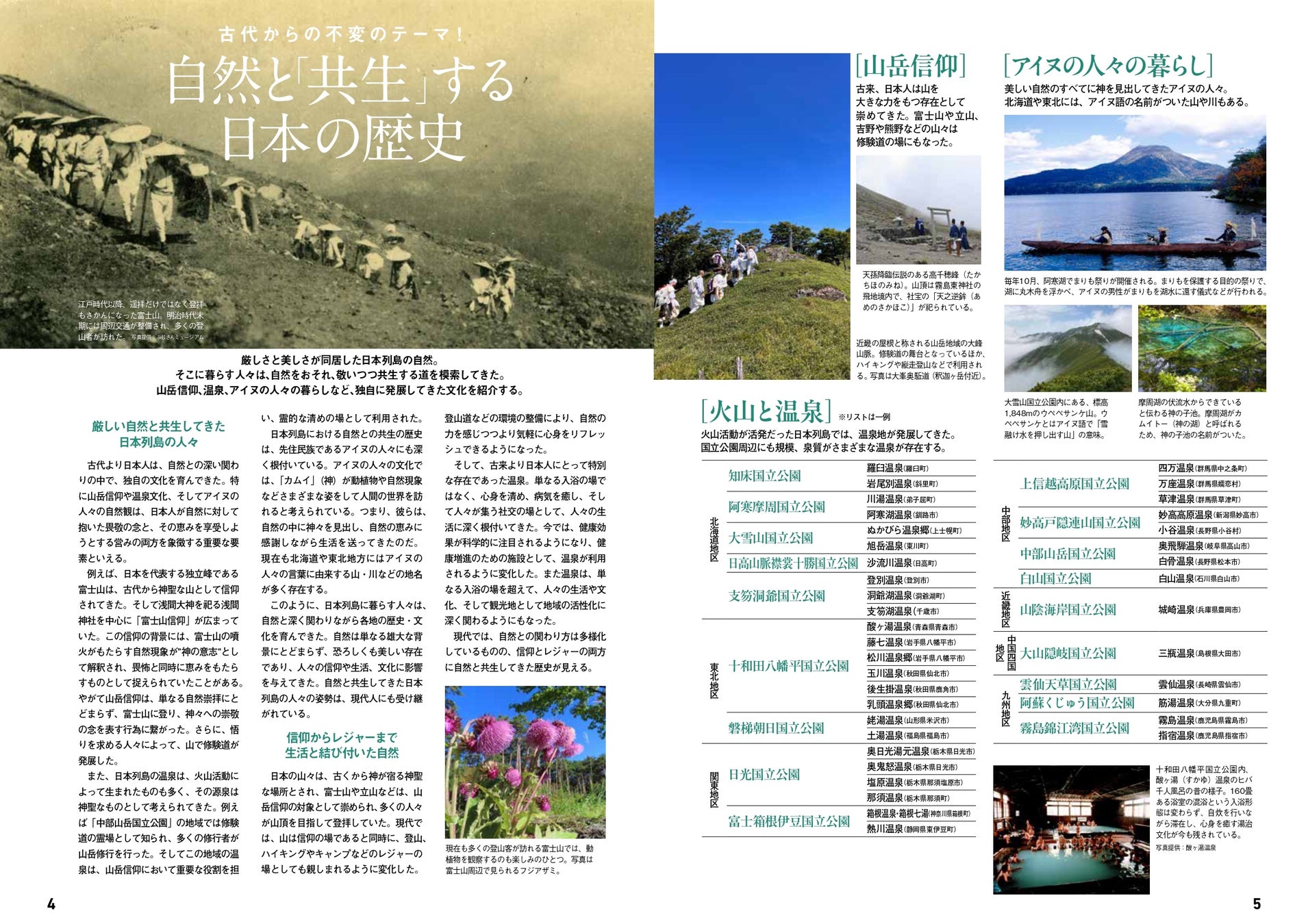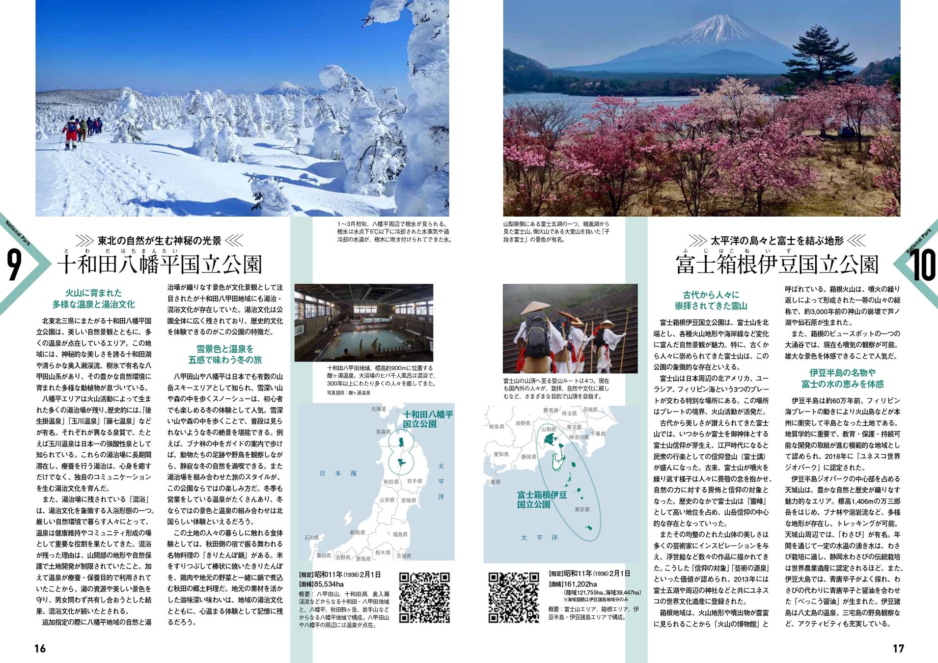 その他、各公園で楽しむことのできるアクティビティやハイキングコース、地元の食材を味わえるグルメなど、国立公園の歴史的・文化的魅力を知ることのできる一冊が完成しました。