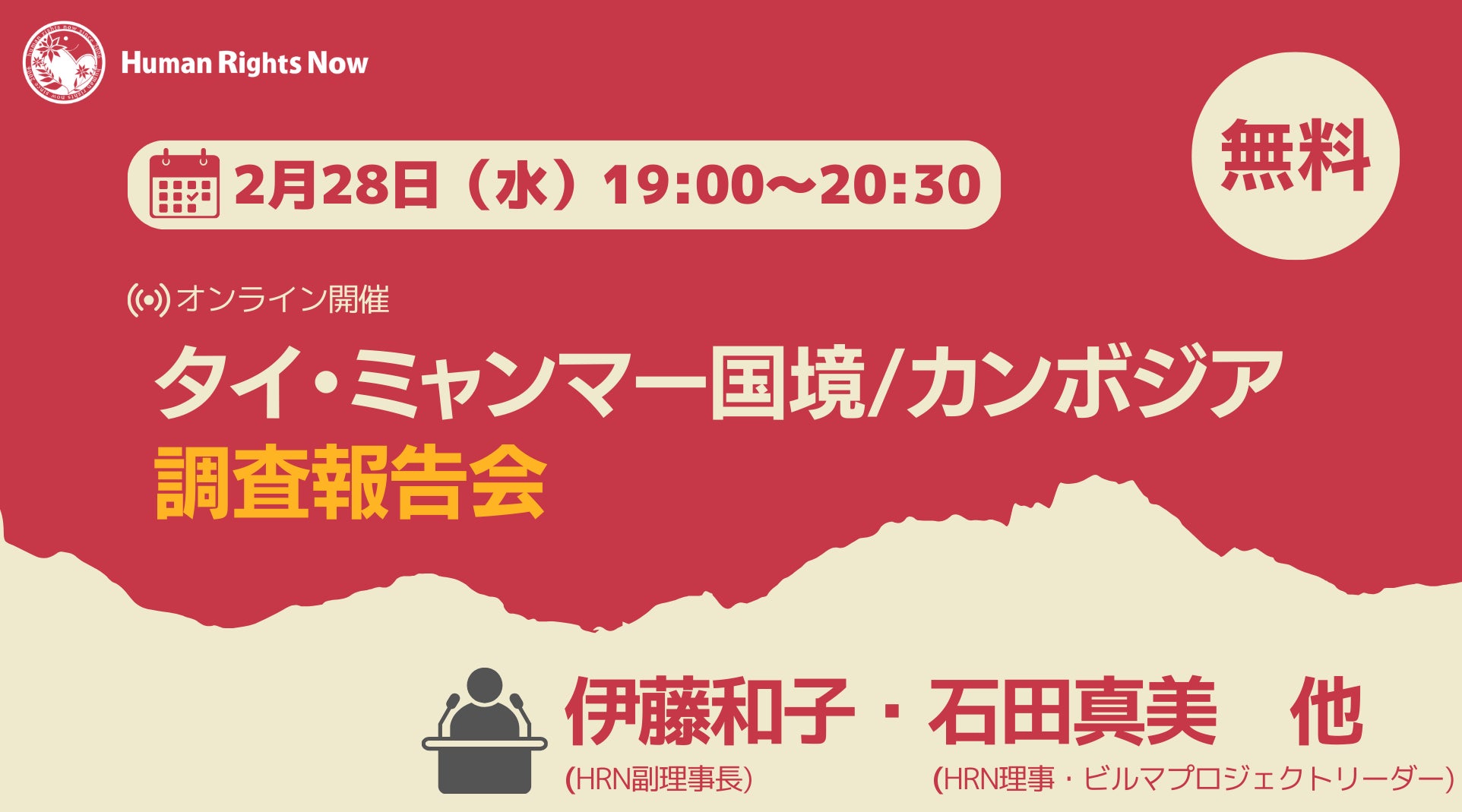 現地で見えてきた人権の課題をお伝えし、私たちにできることを議論したいと思います。あわせて、今回コロナ後初めて訪問することができたカンボジアにおける人権状況についても、多くの方と共有し、日本からできる応援を考えたいと思います。