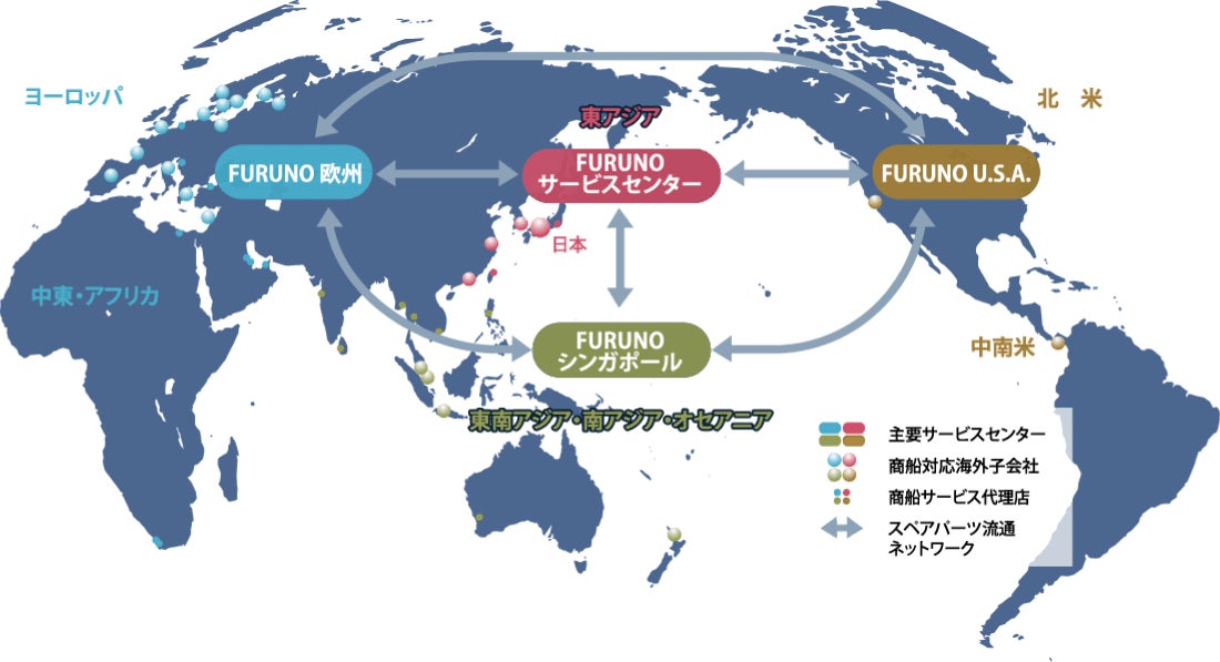 FURUNOは1948年に世界で初めて魚群探知機の実用化に成功して以来、舶用電子機器分野において、その独自の超音波技術と電子技術をもとに数々の世界初・日本初の商品を提供し続けてきました。そして今日、世界90か国以上での販売体制を確立し、世界規模の舶用電子機器総合メーカーとしての確固たる地位とブランドを築いてきました。