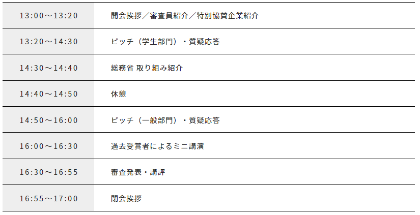 当日のピッチコンテストでは、審査を通過した学生部門・一般部門の各チームが7分間のピッチを行います。