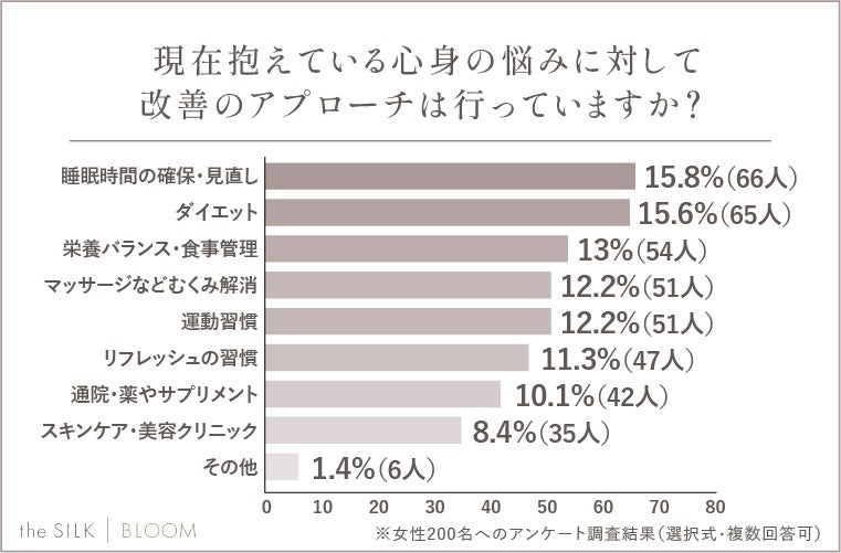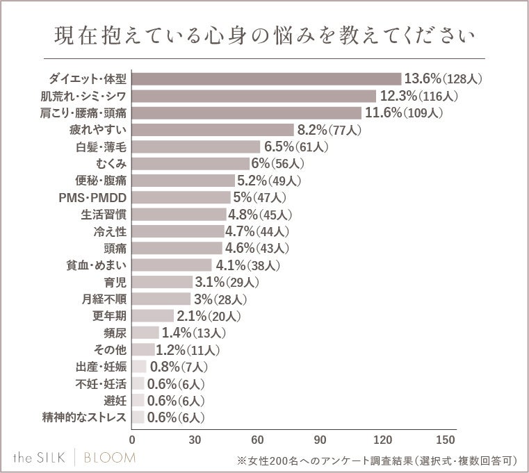 株式会社HYV(本社:東京都目黒区、代表取締役:茅野 航平)が運営する「the SILK BLOOM」では、「女性の身体の悩みランキング」に関するアンケート調査を実施いたしました。