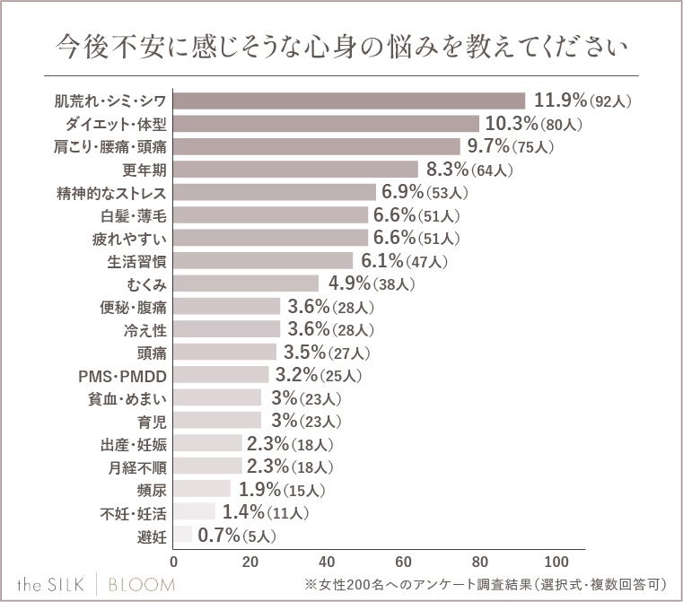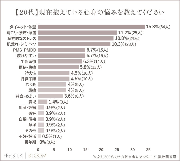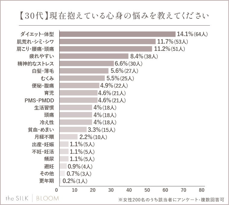 今回the SILK編集部では、200名の女性を対象にアンケート調査を行い、年代別の体の悩みランキングを明らかにしました!