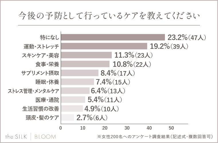 実際に回答者の中でもエイジングケア専用の化粧品を利用したり、美容医療やサプリメントを検討したりする人が多く見受けられました。