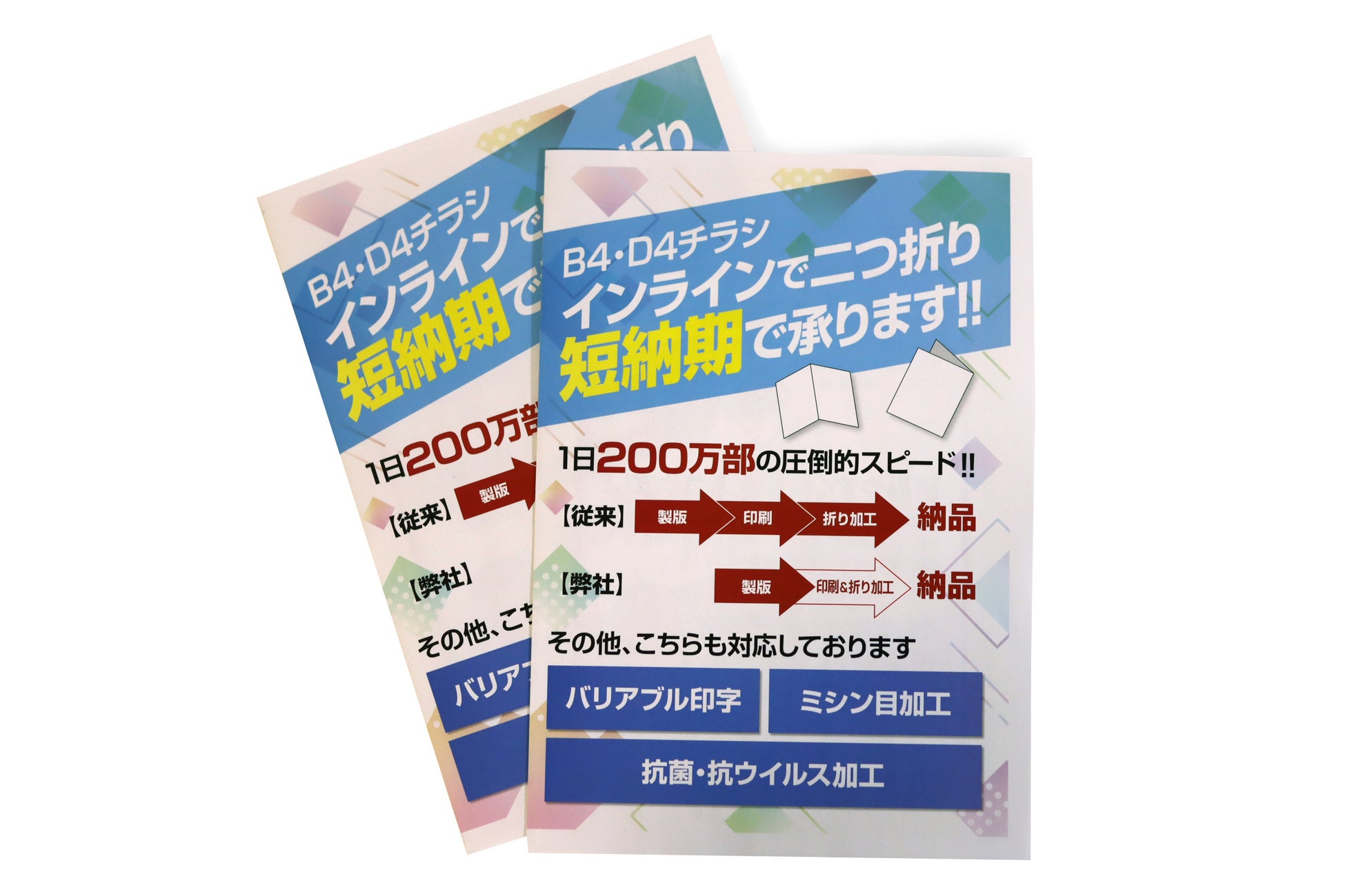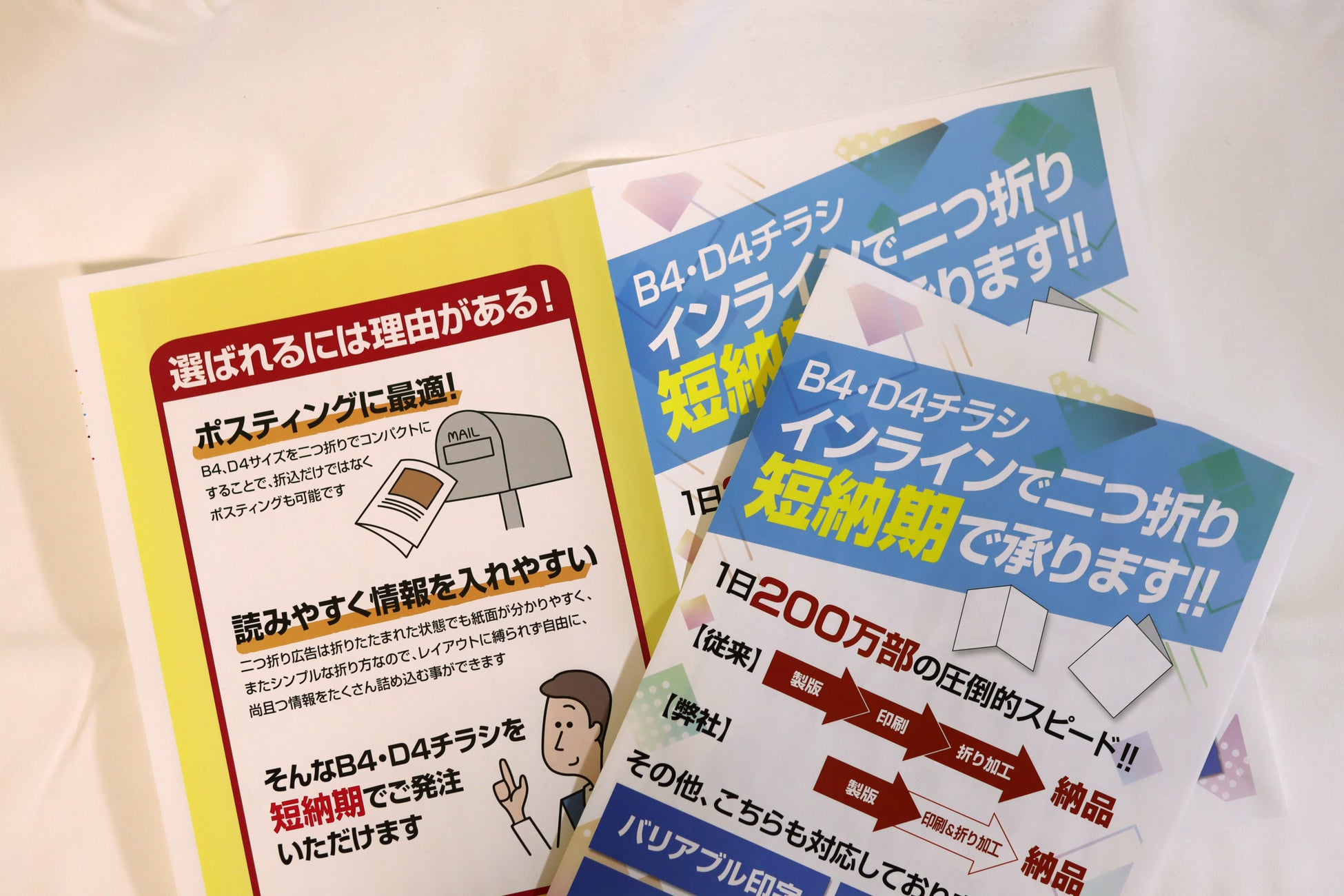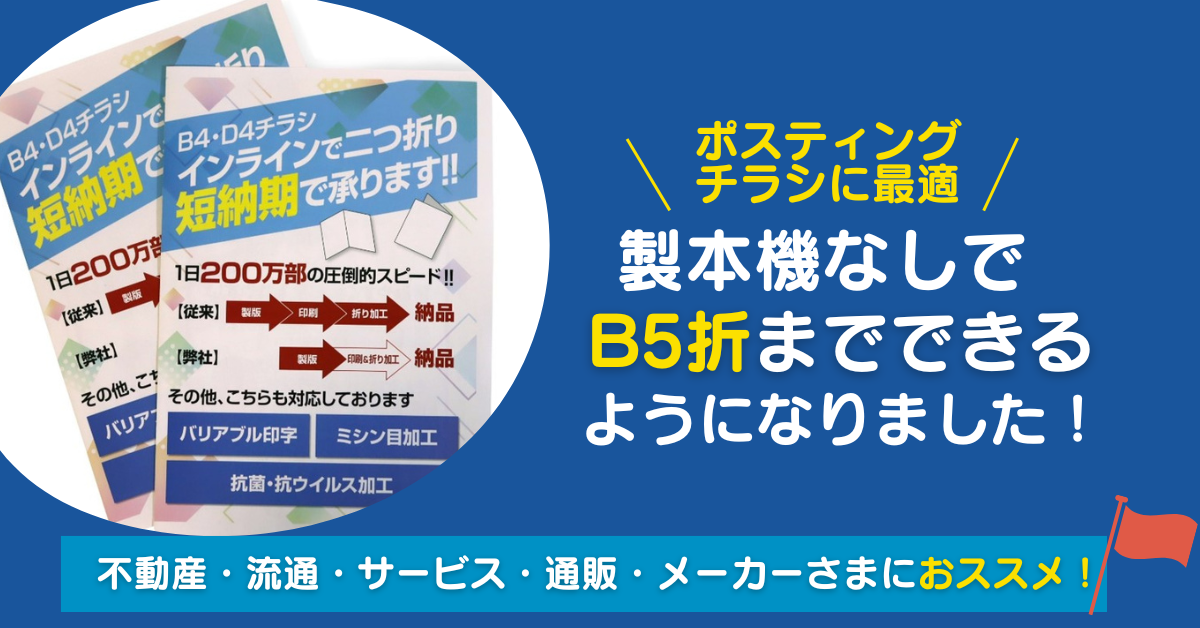 【ポスティングチラシに最適!】高速オフセット、インラインで(印刷と同時に)B4チラシを二つ折りできる装置を導入しました。