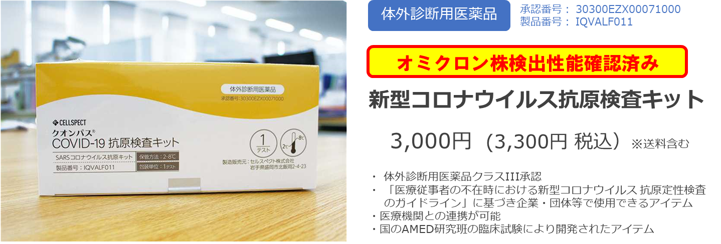 厚生労働省認可「クオンパスCOVID-19 抗原検査キット」(医療用)公、民累計1,000の団体、企業より受注達成のお知らせ
