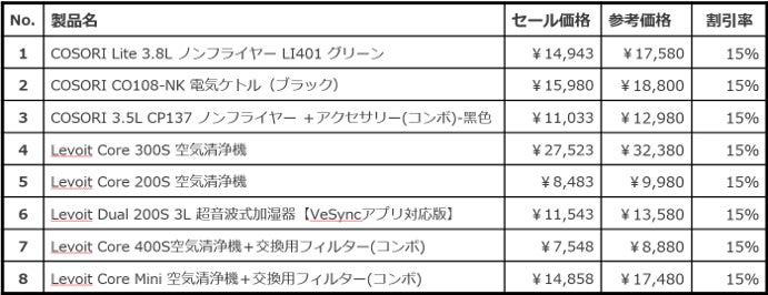 ■その他セール対象のCOSORI&Levoit製品