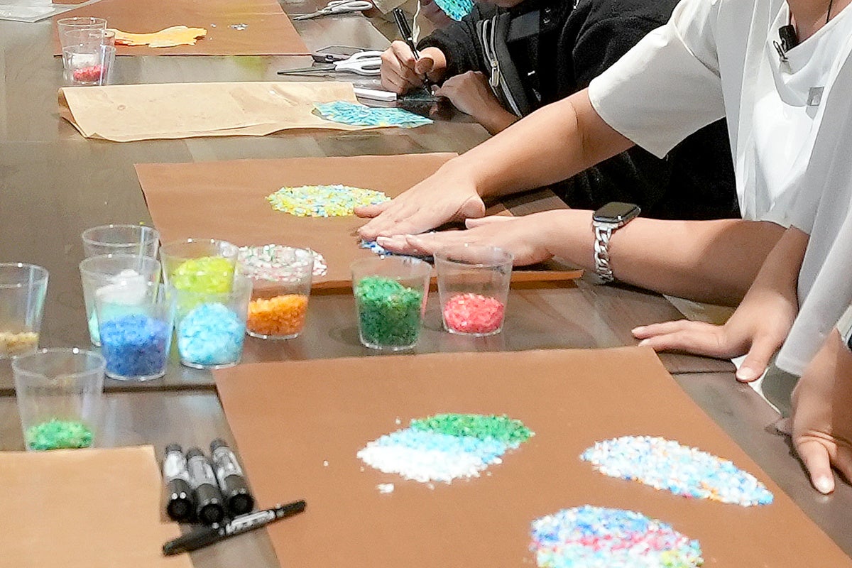 はいむるぶしのエントランスロビーを彩る「サステナブルオーシャンツリー」は、石垣島で海洋プラスチックごみの削減に取り組んでいる合同会社縄文企画とコラボレーションし、海洋プラスチックごみをアップサイクルした素材でホテルスタッフがオーナメントを手作りしました。八重山の豊かな海を大切にする気持ちを込めて、ビーチリゾートらしいヒトデや貝殻などを添えて美しく飾り付けました。はいむるぶしでしか見られない特別なクリスマスツリーが皆様を温かくお迎えし、リゾートの象徴であるロビー空間を幻想的に彩ります。