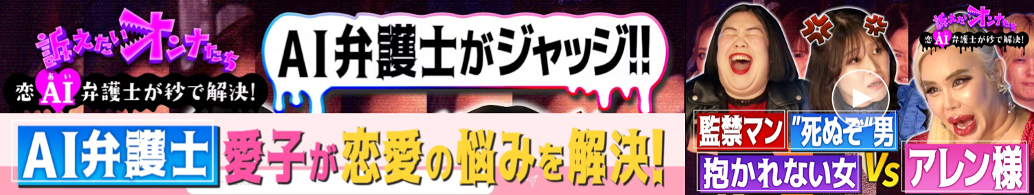 アレン様とヤバイ男話で共感の嵐!「最新AI弁護士」が、恋愛のお悩みを秒で解決! 訴えたいオンナたちのディープで過激なお悩みの連続!