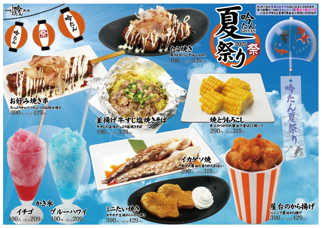 みんな大好きお祭り屋台メニューを吟たん夏祭りと題しまして6月7日より販売開始いたします。