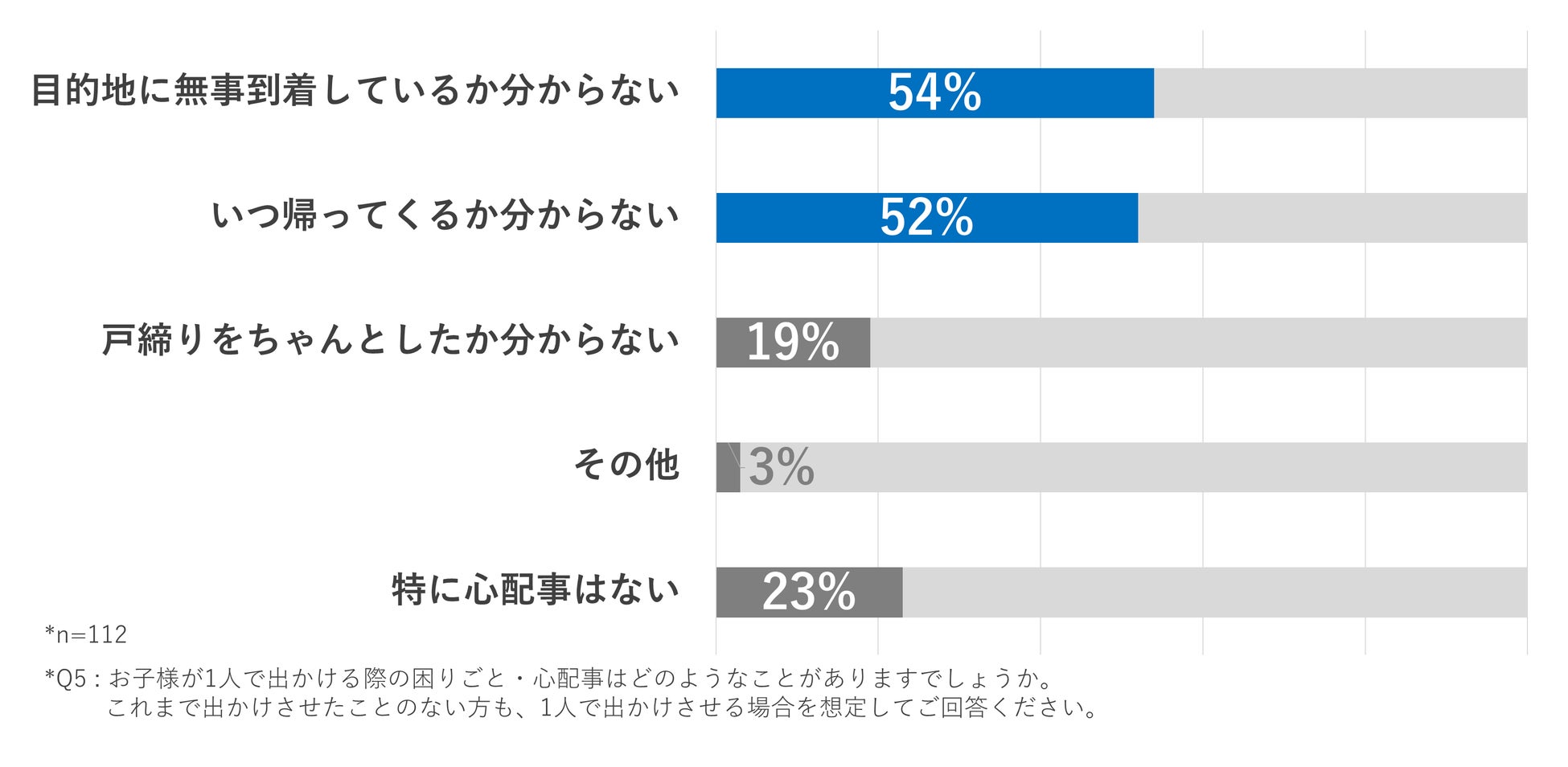 - 過半数の保護者が、1人で出かけた子どもが目的地に無事着いたか分からないことを心配