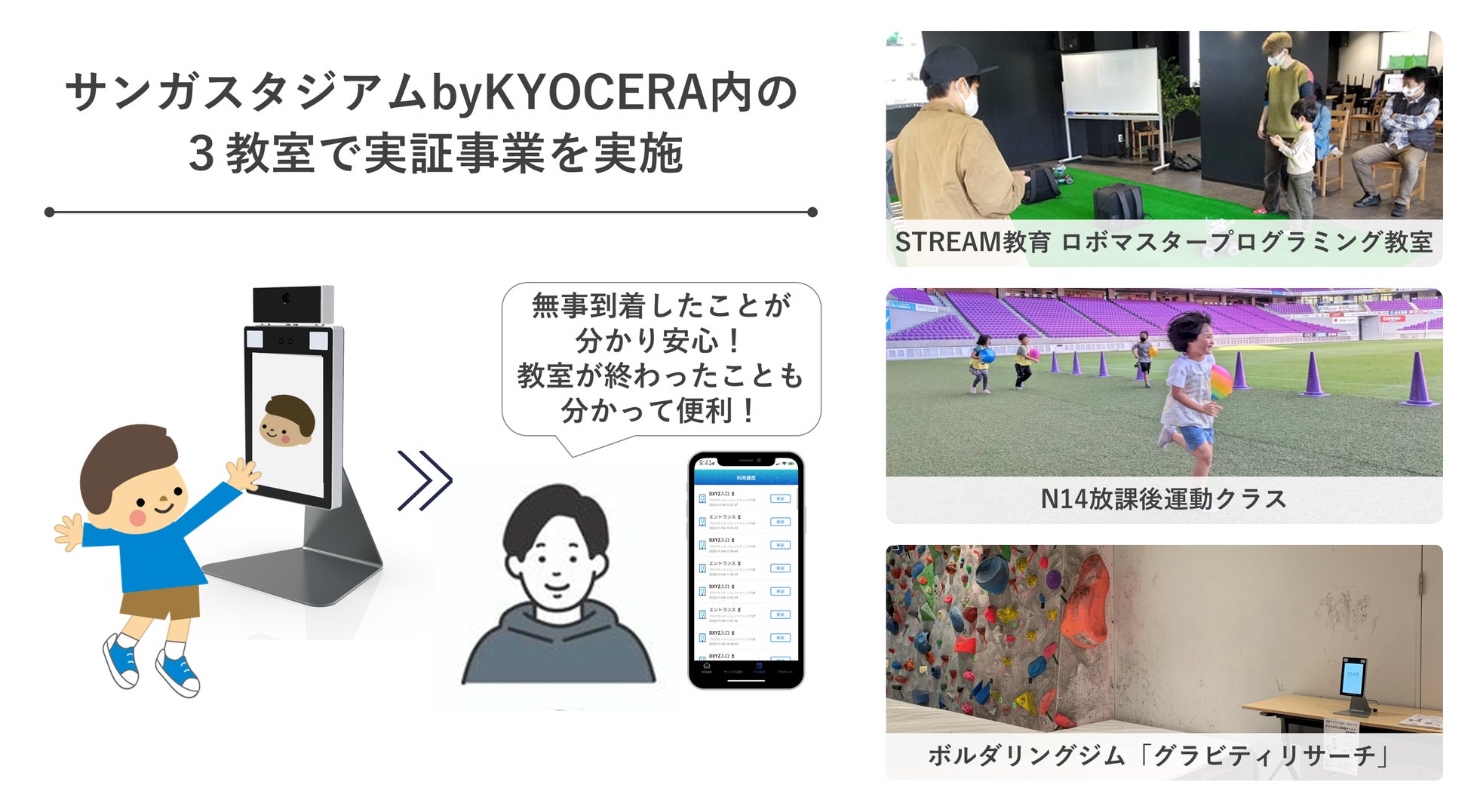 *DXYZ、京都府亀岡市で「子ども見守り顔認証サービス」を実証開始 ~サンガスタジアムby KYOCERAで出欠確認と保護者に安心を~(2022年12月15日プレスリリース参照:https://freeid.dxyz.co.jp/press-release/post-1671/)