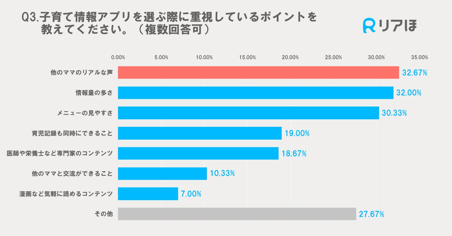 Q3.子育て情報アプリを選ぶ際に重視しているポイントを教えてください。(複数回答可)