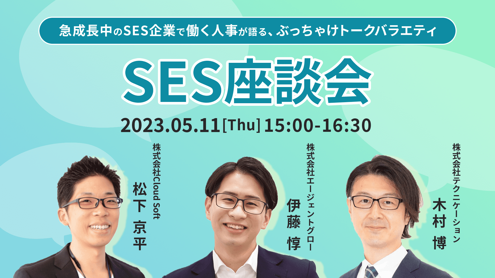 2023年5月は「急成長中のSES企業で働く人事が語るぶっちゃけトークバラエティ『SES座談会』」と「SES企業のエンジニア採用 Part.3」をお届けいたします!